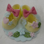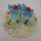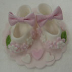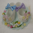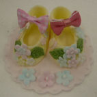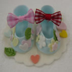 | 3歳から小学6年生にベビーシューズを楽しんでいただきました。みんなそれぞれいろいろな工夫があってとてもかわいく完成しました。 |
