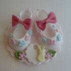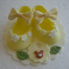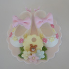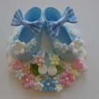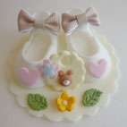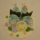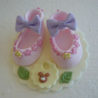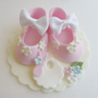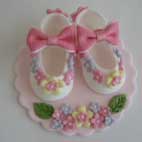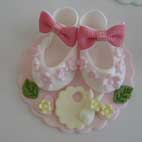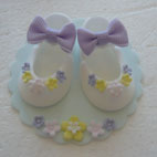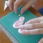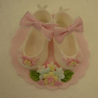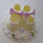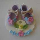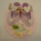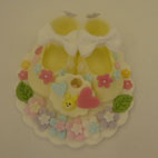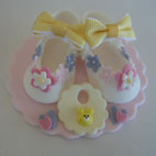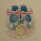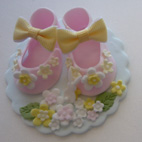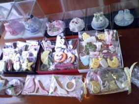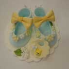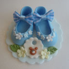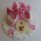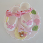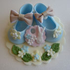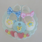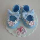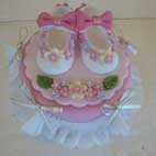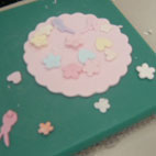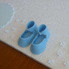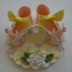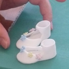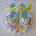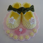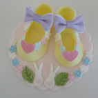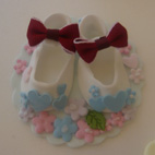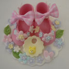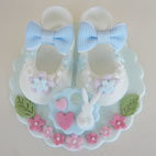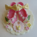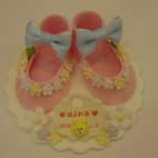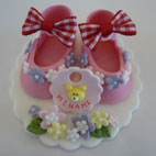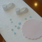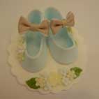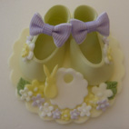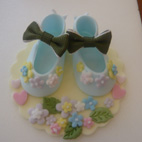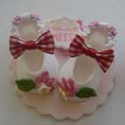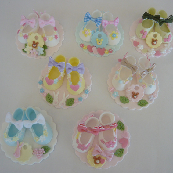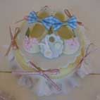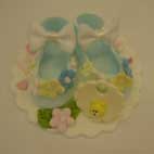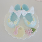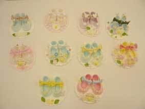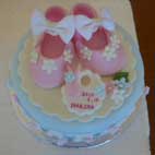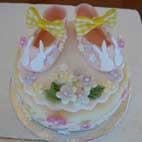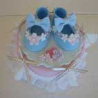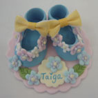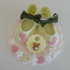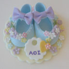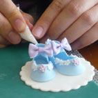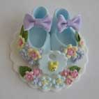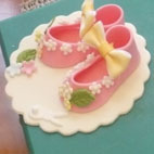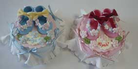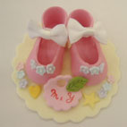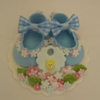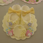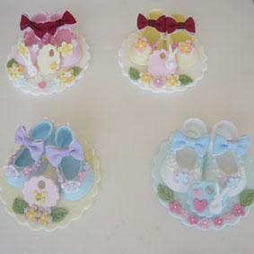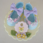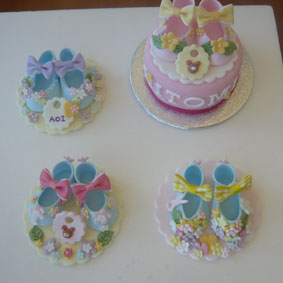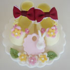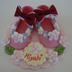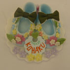 過去に作成したベビーシューズを乗せるケーキを作るクラスも開催しました。ケーキ側面には名前を入れたりフリルをつけました。 |