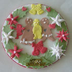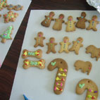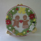 ヒイラギのリースに、ジンジャーマンやスノーマンを飾りました。 |