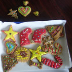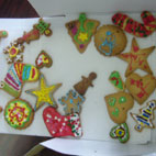 クッキーにアイシングでデコレーション。カラフルなクッキーができました。 |