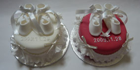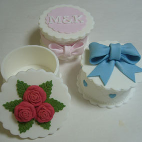 ↑アーモンドドラジェにアイシングでデコレーション。ブライダルのプチギフトにも人気です。