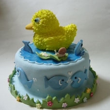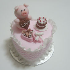 ハートと羽根をテーマにあまり子供っぽくならないようにしました。苦手なペイントにも挑戦し、半立体のケーキにしました。サイズは30*25センチで結構大きめです。 |