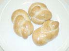 下のパンは八の時のようにしたものと、一つ結びのようにしたものです。同じ生地で、白ゴマいりなのでとてもいい香りのするパンです。 |