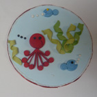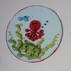 くるくるランドの作品からとても気になったと言われたタコを中心にプレートに仕上げました。ブラジルにはない技法と喜ばれました。 |