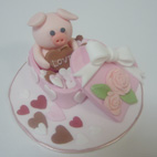 バレンタインブタちゃんのケーキ。ハートがいっぱい。 |