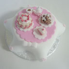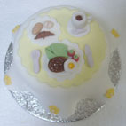 かわいらしいティーパーティーです。ケーキがおいしそう。 |