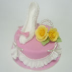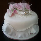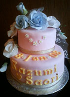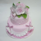 清楚なバラの2段ケーキ。2段フリルも綺麗です。 |