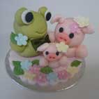 ぶたちゃんのお雛様を春らしくアレンジ。明るく楽しい雰囲気です。 |