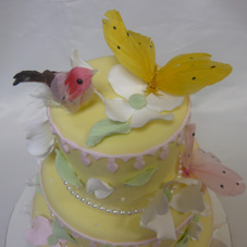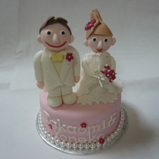 Tsanのシュガークラフト初作品です。お友達の結婚祝いに、ウェルカムケーキを作りました。新郎のハットと、新婦のベールがポイントです。私もTsanも自分が欲しい!って思ってしまいました。お友達へのお祝いの気持がいっぱい詰まったケーキになりました。 |