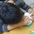二人での共同作業。真剣です。いい思い出になっていただけたと思います。 |