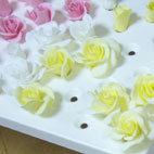披露宴で、お友達と手作りしたことを司会の方が説明されたので、お友達も周りの人からいろいろと質問されたそうです。「えー、花も作ったの?」とか「靴は何でできてるの?」などなど・・・。そしてみんなすごくかわいい!!といいながら穴が開くくらいじっくり見てくださったとのこと。なんだか私もうれしいです。 |