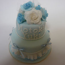 10センチと7センチの2段ケーキです。結婚されるお友達へのプレゼントです。滋賀から電車で来てくださってお昼休憩を挟んで1日で完成しました。ブルーと白でとてもかわいいケーキです。 |