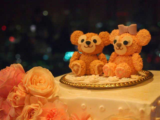 ダッフィーとシェリーメイを生のウエディングケーキに飾りたいとのことで、電車で2時間半もかけてお母様と一緒に来てくださいました。 |