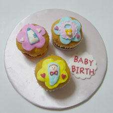 おまけでいくつか作品を作ったのですが、写真取り忘れました・・。カップケーキをフォンダン(ペースト)で作り、ウィルトンの看板的にしてみました。 |
