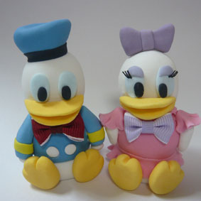 ドナルド好きな新郎新婦からオーダーを受けて作成しました。生のウエディングケーキに乗せるとのことで、日付入りのプレートとともに宅配で送りました。
